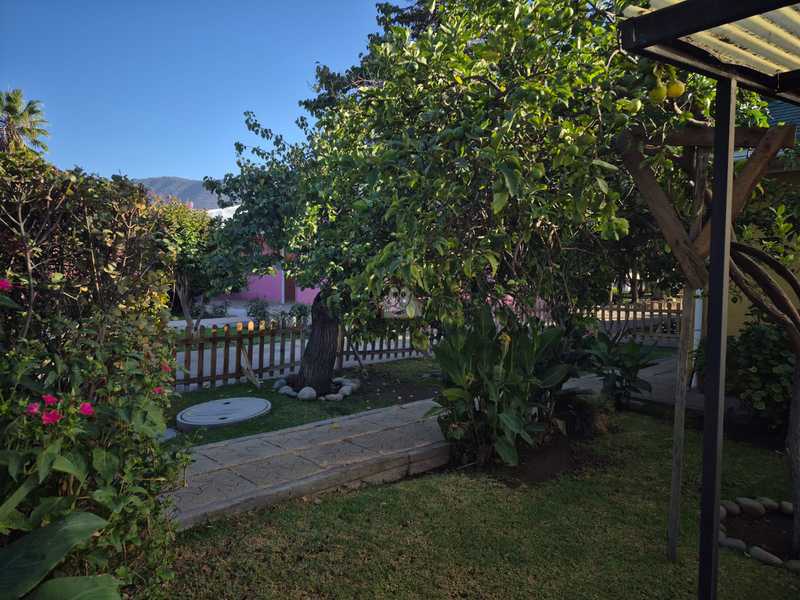 Árboles frutales y variedad de plantas.