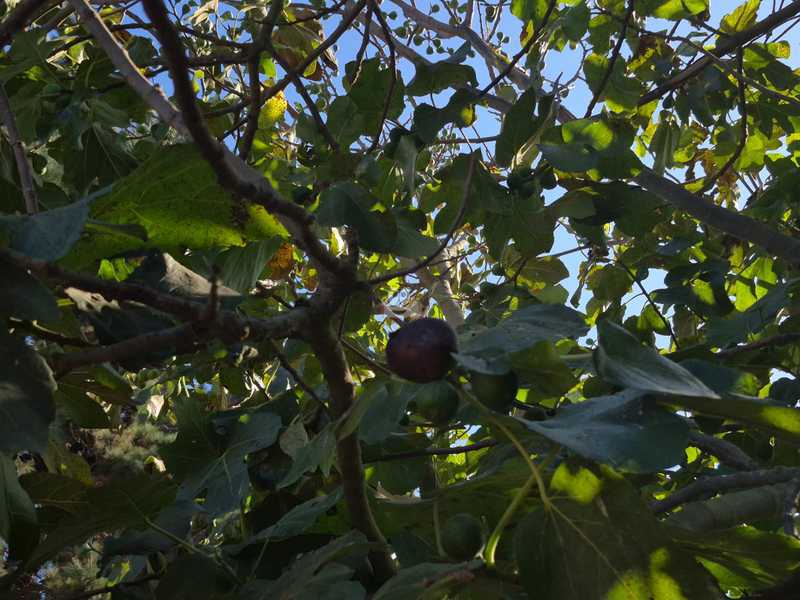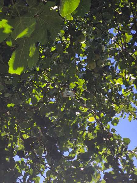 Amplio terreno con entorno natural: higuera, peral, parra y variedad de plantas.